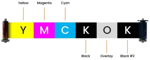 Double-sided printing ribbons allow you to print on both the front and back of an ID card in a single pass, eliminating the need to manually flip the card. This is especially useful for organizations that want to display high-quality images, company logos, or personalization on the front, while adding barcodes, magnetic stripes, contact details, or legal disclaimers on the back. These ribbons often include YMCKK panels, where the first set of panels prints the full-color front (YMCK), and the additional black (K) panel prints high-quality text or barcodes on the reverse side. This setup ensures cost efficiency, as the full-color panels are only used where needed while the back side relies on the more economical black resin panel.