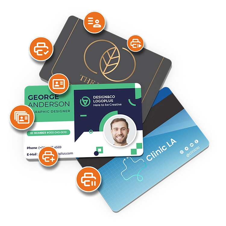 You can design standard CR80 ID cards, visitor badges, membership cards, and more, with options for single- or double-sided printing.